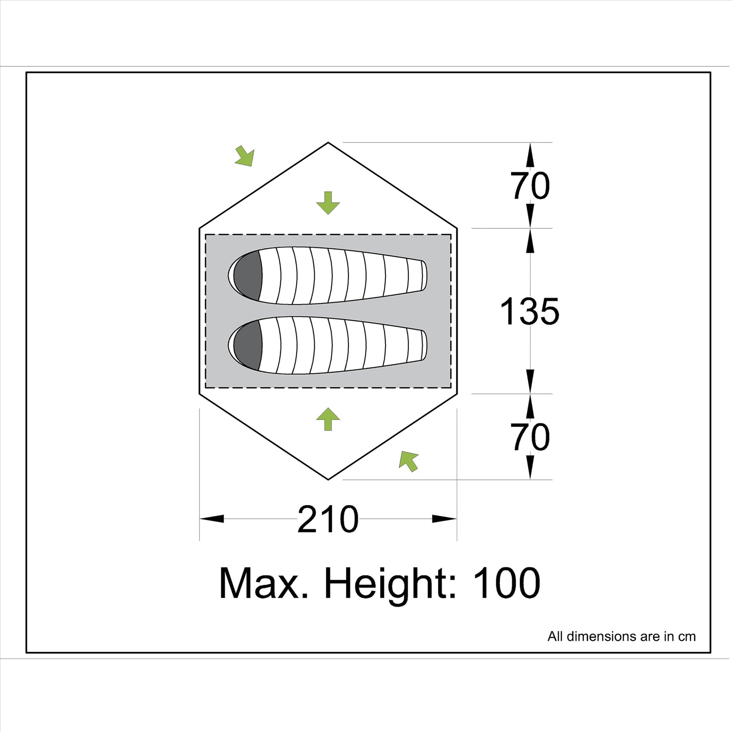 • 2 side vents for greater ventilation and airflow control - can be accessed and opened/closed from inside the tent