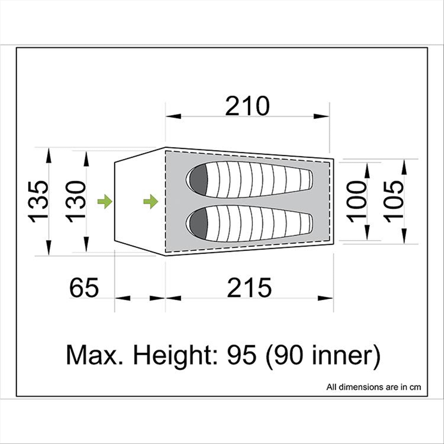 The Tracker 2 is a great option for people looking for a tent with plenty of room for 1 person but also has the option of accommodating 2 people if needed. It’s a roomy 1 person tent and cosy 2 person. The Tracker 2 floor has a 130cm wide inner at the entrance and tapers off to 100cm at the foot end.