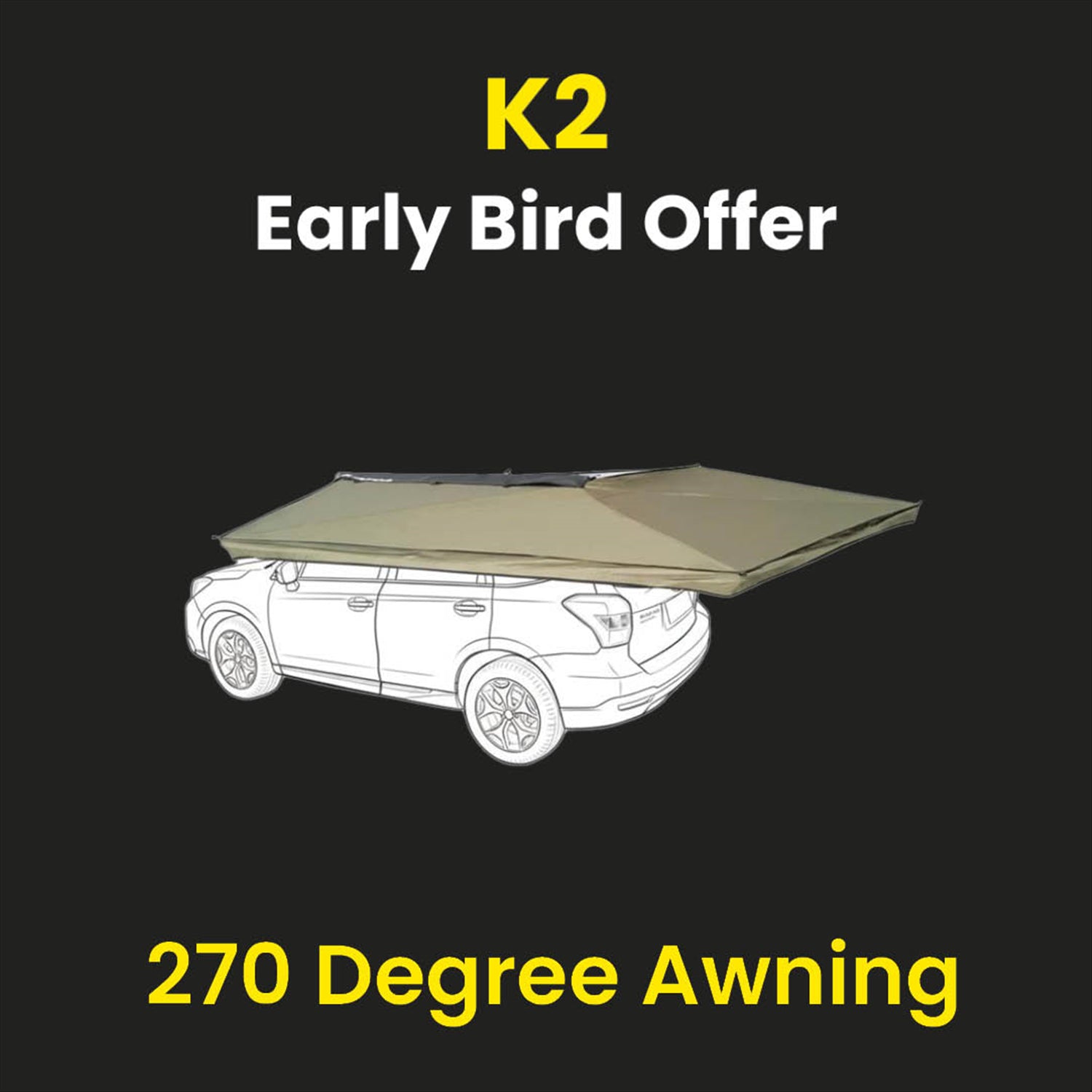 Upgrade your vehicle set up with the Orson K2 270-Degree batwinfg style Vehicle Side Awning, designed to give better shade and protection on the left (passenger) side of your vehicle and wrapping around to the rear. This 270-degree freestanding awning is perfect for camping, overlanding, and off-road adventures, offering easy setup and pack-away for hassle-free use. Ideal for pairing with rooftop tents, it provides plenty of space for shelter and relaxation.